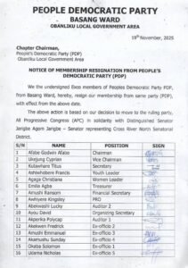 The meeting, convened under the banner of “Forum of APC Chapter Chairmen and Secretaries,” alleged that Eba’s anti-progressive actions in piloting the party’s affairs in Cross River is destabilizing and destructive