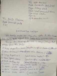 The communique was signed the 18 chapter chairmen and 17 chapter secretaries of the Cross River APC. The forum is comprised of 18 chapter Chairmen and 18 chapter Secretaries of the APC in the state.