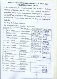 The defectors, largely drawn from the Local Government Chapters and Ward levels of the PDP, said they were leaving the PDP due to dissatisfaction with the party and to support Distinguished Senator Jarigbe Agom Jarigbe’s re-election bid ahead of the 2027 Senatorial election.