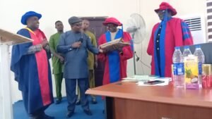 Highlights of the induction was the administering of oath of allegiance, presentation of licence to the VC by NISLT for onward forwarding to the HOD, presentation of awards of service to the Vice of Chancellor, Prof Offiong E Offiong, Deputy Vice Chancellor Academics, Prof Ekaette Enang, the Acting Director General, NISLT, Prof Peter Adefisoye Oluwafisoye, the keynote speaker, Prof Ani Nkang, best graduating student, Ms Constance Obasi, among others.